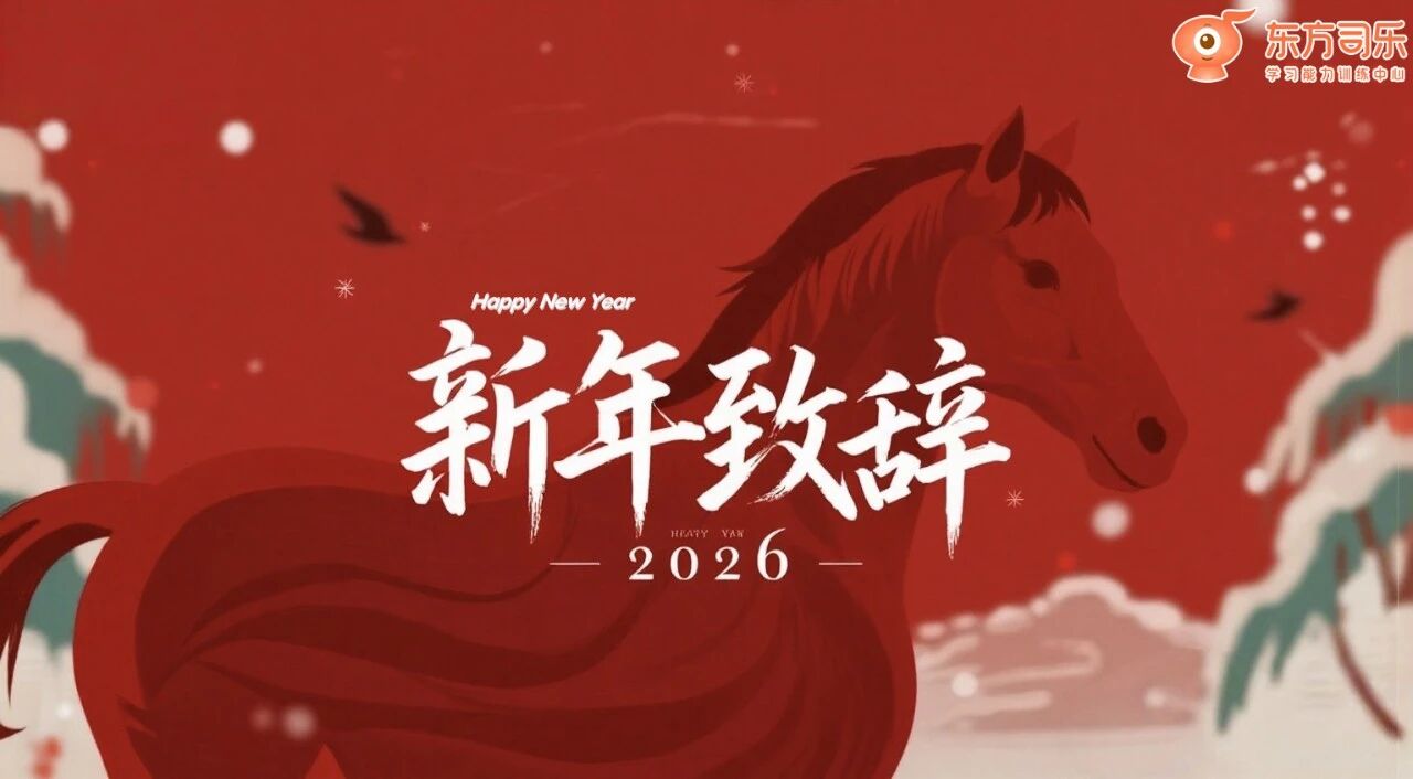 岁聿云暮,一元复始;星霜荏苒,华章日新。在这辞旧迎新、继往开来的美好时刻,我谨代表东方司乐学习能力训练中心,向全体师生员工、广大学员家庭、以及长期携手同行的各界伙伴,致以最诚挚的问候与最美好的祝愿!恭祝大家在新的一年里,骏业宏开、鹏程万里、阖家安康、万事胜意!